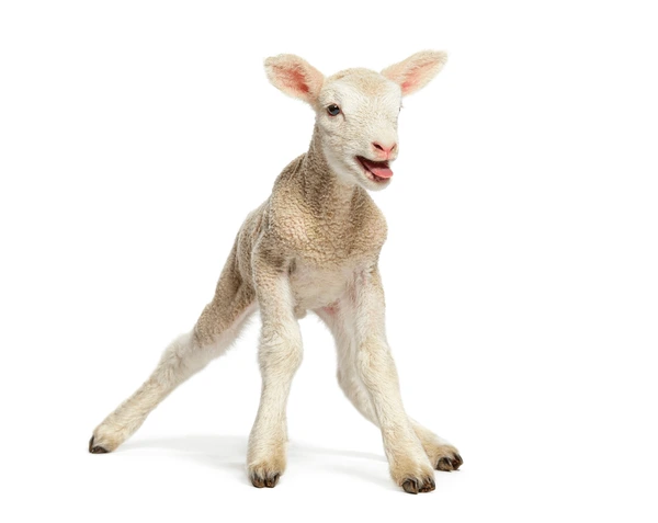 Lambs can stand and walk within minutes of being born. They begin grazing at four to five months and are considered mature around one year old.